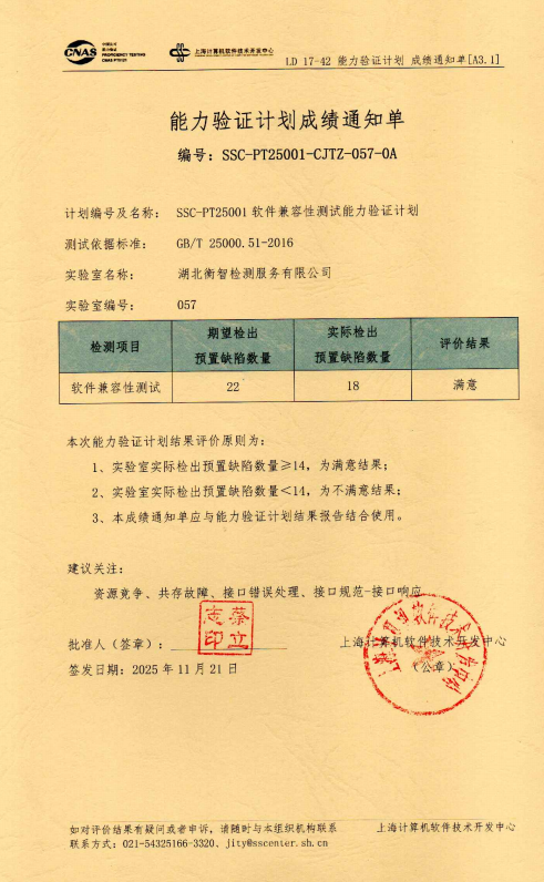 喜报!公司顺利通过CNAS 2025年度兼容性能力验证,获“满意”结果!